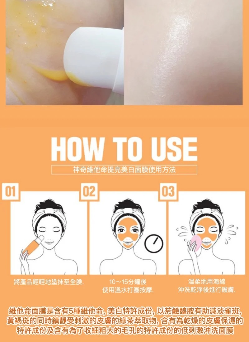 含有5種維他命成份,極強美白功效